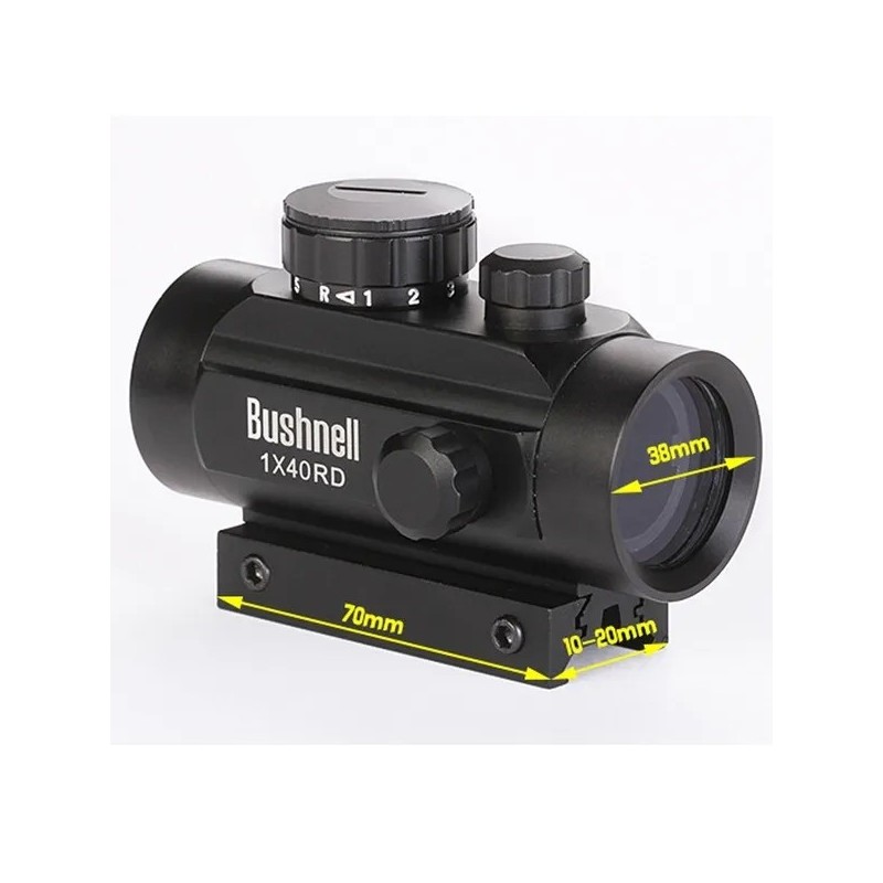RED DOT Bushnell 1X40RD, yeşil ve kırmızı nokta seçeneklerine sahip kompakt bir lazer nişangahıdır. 1x büyütme özelliği ve geniş görüş alanı sayesinde hızlı hedef tespiti sağlar, bu da özellikle yakın mesafe atışları için idealdir.